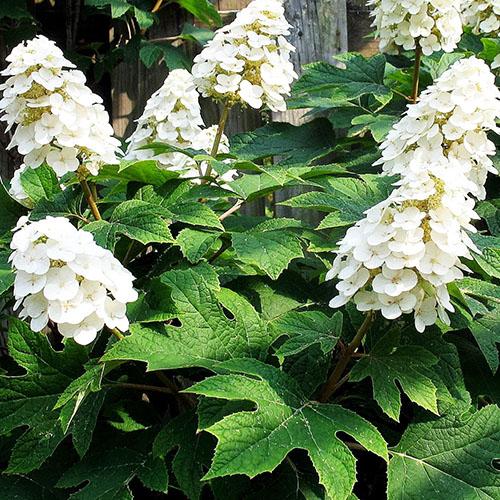 Гортензия дуболистная Алиса (Hydrangea quercifolia 'Alice') — изысканный сорт декоративного кустарника, известного своей крупной листвой, эффектным цветением и яркой осенней окраской. Этот сорт выделяется не только пышными соцветиями, но и выразительной, «дубовидной» листвой, придающей растению особую архитектурную привлекательность.