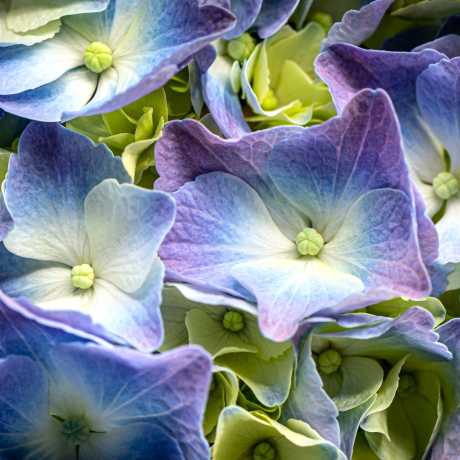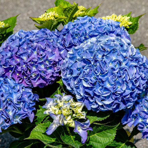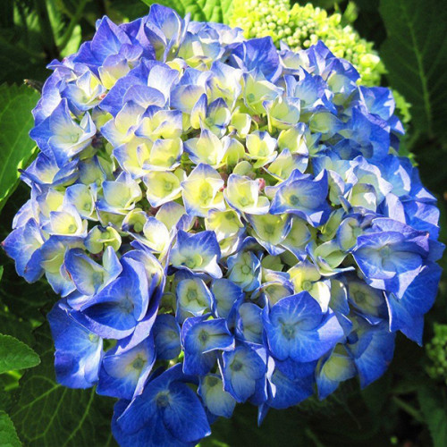 - Соцветия: Полушаровидные, крупные, диаметром до 20 см. Цвет соцветий может варьироваться от розового до синего, в зависимости от кислотности почвы.