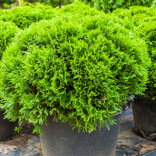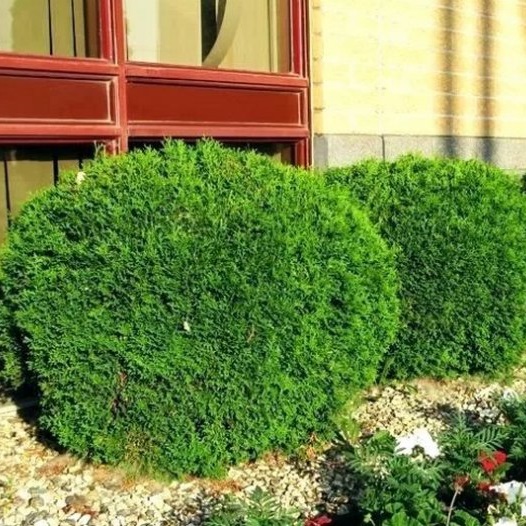 Туя западная Литл Гиант (Thuja occidentalis Little Giant) - карликовый, очень декоративный вечнозелёный многолетний кустарник, сорт из семейства кипарисовых с густой шаровидной кроной. Широко используется в ландшафтном дизайне как в групповых так же и в одиночных посадках. Медленно растущее хвойное растение с умеренной силой роста, во взрослом возрасте вырастает в высоту 0,8 м в диаметре достигает до 1.5 м., ежегодный прирост до 10 см. Хвоя ярко-зеленая, темнеет до буро-зеленой зимой, чешуевидная, плотная. Шишки мелкие коричневые.