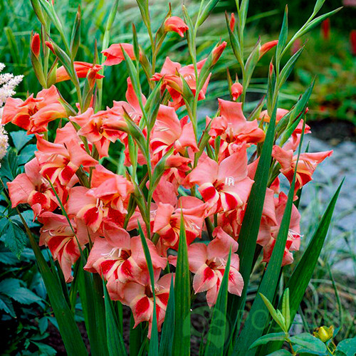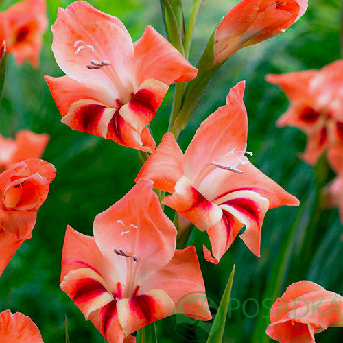 Гладіолус Nanus ‘Nathalie’ – це мініатюрний сорт із групи низькорослих, карликових гладіолусів (Nanus), що відзначається чудовим поєднанням краси, компактності та витривалості. Привертає увагу ніжними, але водночас виразними кольорами: сніжно-білі пелюстки прикрашені тонкими рожевими відтінками та м’якими малиновими мазками ближче до центру. Легке гофрування пелюсток додає відчуття легкості, а акуратні суцвіття роблять цей гладіолус ідеальним вибором для оформлення клумб, альпінаріїв, бордюрів та контейнерного вирощування.