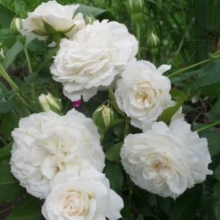 Маруся (Maroussia) популярна густо-махрова, чудова троянда з величезними сніжно-білими квітками із зеленуватим відтінком на зовнішній стороні щільних пелюсток. Бутони ідеальної класичної форми, густо-махрові складаються з 55 – 80 пелюсток. Кущ з великою силою росту, з потужними вертикальними пагонами, з помірною кількістю шипів виростає до 100 см заввишки, ширина близько 70 см. Рясне цвітіння, все літо. Аромат легкий, ніжний. Сорт підходить для зрізування, термін життя квітки у вазі 12-14 днів. Стійкість до чорної плямистості середня. Висока морозостійкість.