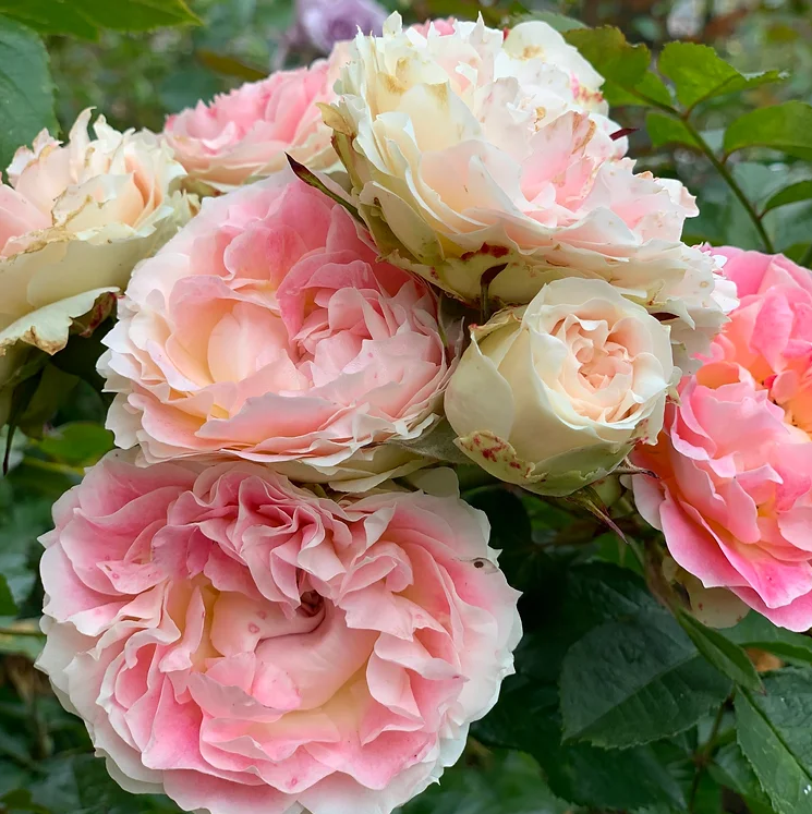 Рожеві бутони швидко розкриваються, у прекрасні округлої форми густо-махрові квітки зазвичай розташовані у суцвіттях від 3 до 9 шт, діаметром 6 – 8 см, вони майже ніколи не показують серединку. Найбільш барвистий сорт у теплих, сухих умовах. Жовтий відтінок з часом вигоряє, тому старіші квітки стають біло-рожевими.